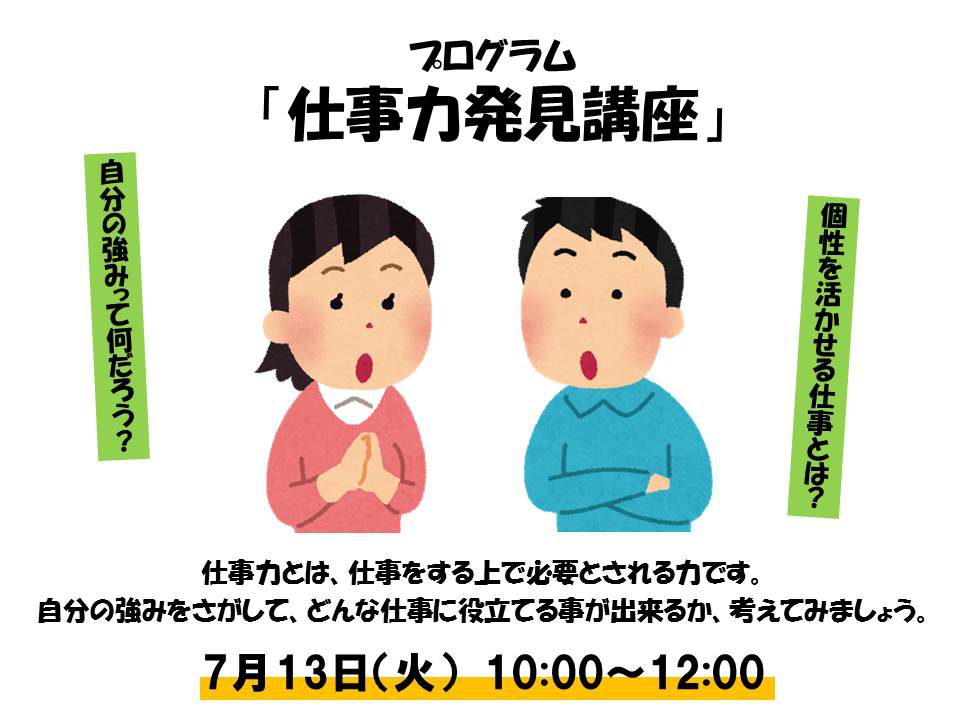 自分の持っている個性や強みを知り、どんな仕事で生かすことができるのか、考えてみましょう!