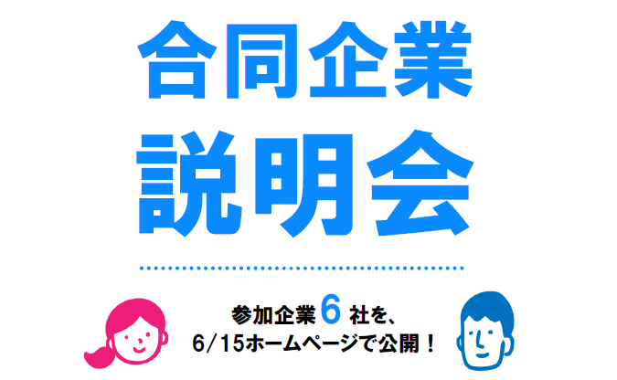 7/6(金)に開催される、合同企業説明会の参加企業6社をお知らせします。