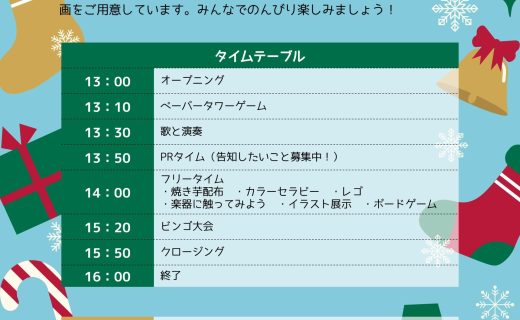プログラム表でもお知らせの通り12月20日(土)にお楽しみ企画「サポ...